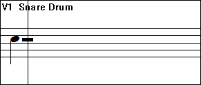 Wenn Ihr Perkussionslayout mehr als ein Instrument auf derselben Position im Notensystem hat, z. B. Snare und Side Stick beide in dem vierten Zwischenraum, können Sie mit der Maus oder den Pfeiltasten zwischen ihnen hin und her wechseln. Achten Sie auf die Bezeichnung am Mauszeiger, die anzeigt, welche Note Sie eingeben werden.