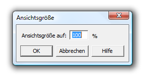 Wählen Sie ‘Andere’ aus dem Untermenü ‘Ansichtsgröße’ in dem Menü ‘Ansicht’ (oder drücken Sie Strg-0).