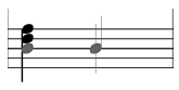Halten Sie bei der Eingabe von Akkorden die Umschalttaste gedrückt und tippen Sie dann das gewünschte Intervall ein, um Akkordnoten unterhalb der angewählten Tonhöhe hinzuzufügen.
