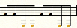 4. Geben Sie dieselbe Passage in Takt 4 im 1. Notensystem ein. Verwenden Sie die MIDI-Notennummern 35 (B1)für die Bass-Drum und und 38 (D2) für die Snare-Drum.