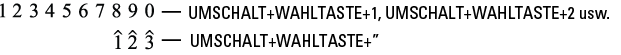 Diese Zeichen können ganz normal eingetippt werden.