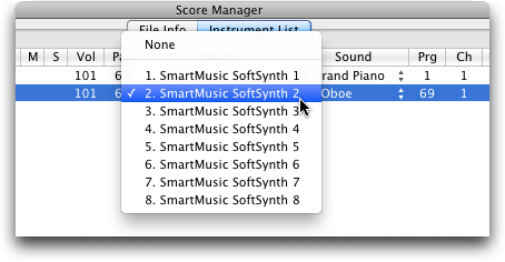 Für eine optimale Wiedergabe sollte jedes Instrument einer Partitur einen eigenen MIDI-Kanal verwenden. Wenn Sie Instrumente mit dem Dokument-Assistenten erzeugen oder in der Partiturverwaltung hinzufügen, sorgt Finale dafür, dass diese Bedingung eingehalten wird. Details zum Zuordnen von Klängen und MIDI-Kanälen zu Instrumenten finden Sie unter Instrumentenwiedergabe konfigurieren.