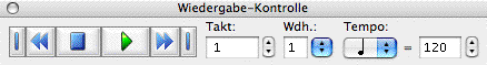 Die Wiedergabe-Kontrolle ist eine andockbare Symbolleiste oder ein flexibles Fenster, das Ihnen Felder für die Kontrolle der Wiedergabe Ihrer Partitur an die Hand gibt.