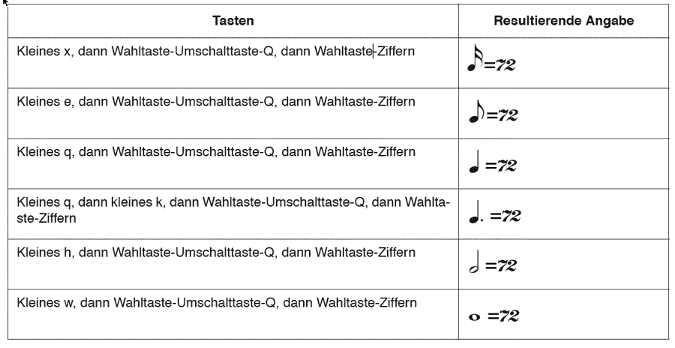 - Erzeugen Sie die Metronomangabe unter Verwendung der unten aufgeführten Tastenkombinationen: