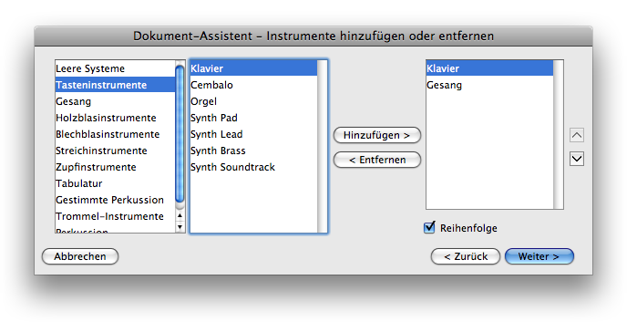 Wie Sie die Instrumente Ihrer Partitur wählen: