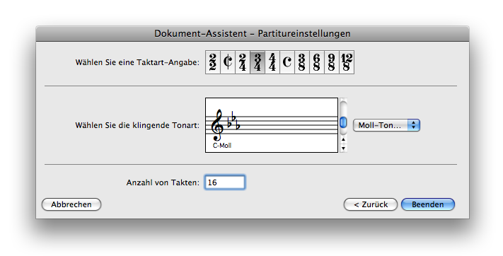 2. Setzen Sie die Taktart auf 3/4 und die Tonart auf C-Moll.