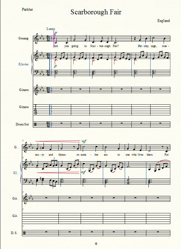3. Geben Sie den Titel und den Komponisten ein („Scarborough Fair“ und „England“) und klicken Sie Weiter.