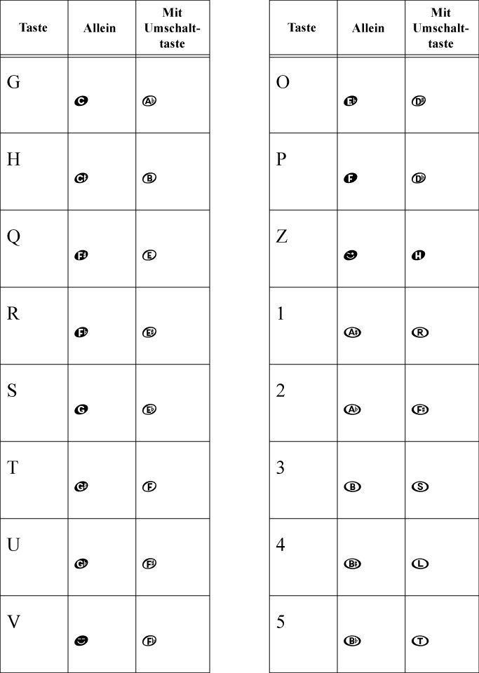 Sie befinden sich hier: Referenz > Zeichentabellen > Zeichentabelle Finale AlphaNotes