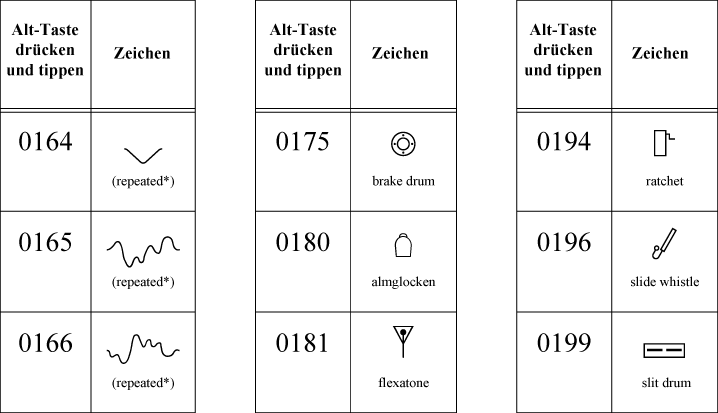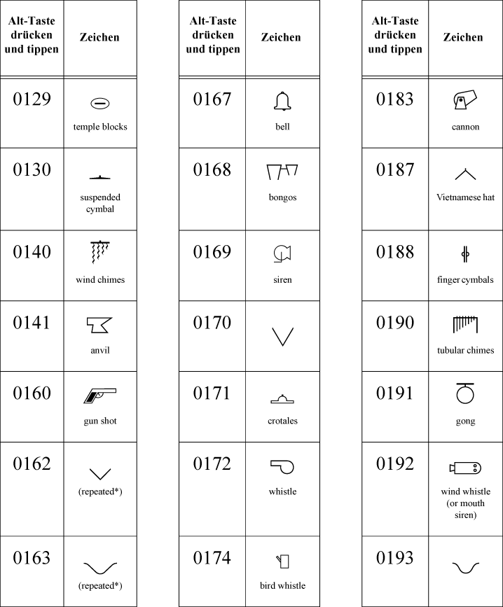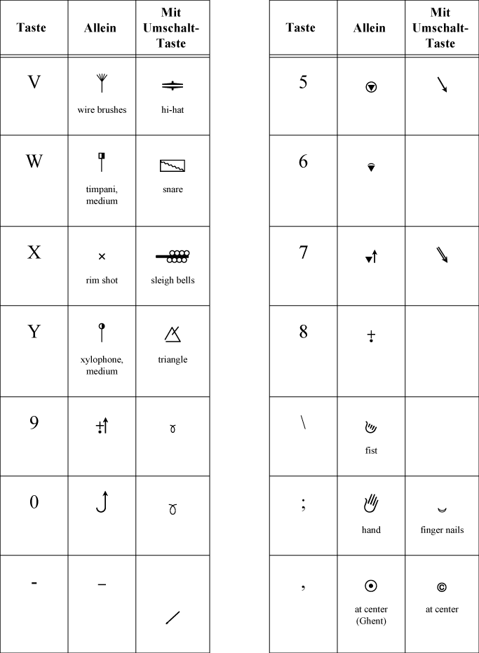 Sie befinden sich hier: Referenz > Zeichentabellen > Zeichentabelle Finale Perkussion