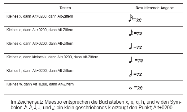 - Erzeugen Sie die Metronomangabe unter Verwendung der unten aufgeführten Tastenkombinationen: