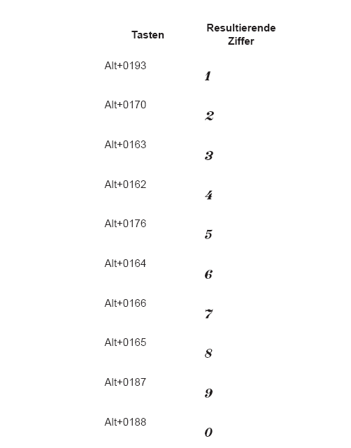 , tippen Sie ALT und tippen 0190 auf dem Ziffernblock.