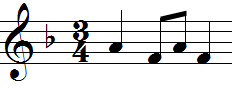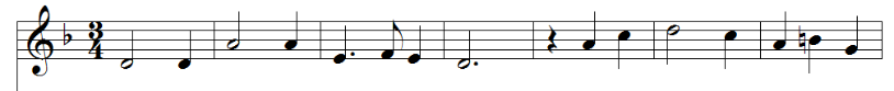 - Geben Sie die punktierte Halbnote D in Takt 4 ein. Die ersten vier Takte sollten jetzt so aussehen: