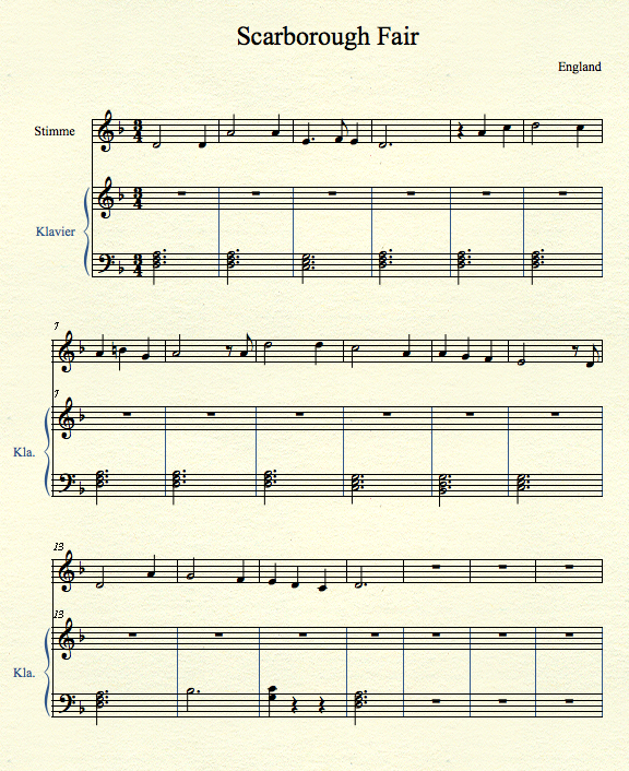 Die linke Hand des Klavierparts enthält meistens Akkorde, die wir jetzt eingeben. Das ist ganz einfach in NotePad.