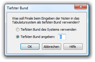 Damit die Noten korrekt auf den Saiten platziert werden, muss NotePad wissen, welcher Bund der tiefste ist. Wenn Sie möchten, dass eine bestimmte Passage weiter oben am Hals gespielt wird, können Sie den tiefsten Bund festlegen.