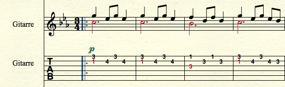 Es gibt mehrere Methoden, Noten in ein Tabulatursystem einzugeben. Wir fangen jetzt mit der Grundlage an und kopieren die Musik aus einem Standardnotensystem in das Tabulatursystem.