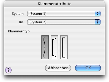 Klammerntyp. Wählen Sie den Klammerntyp, den Sie für die ausgewählten Notensysteme verwenden möchten.