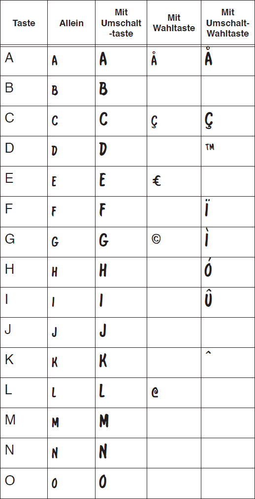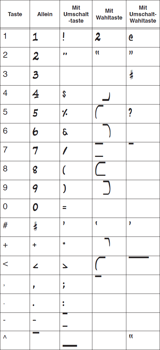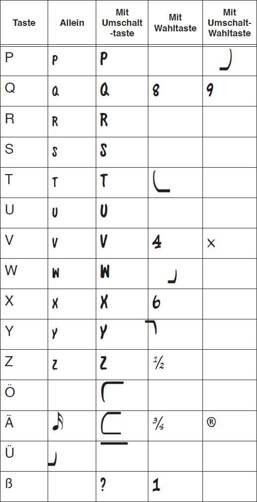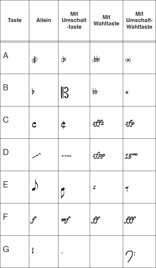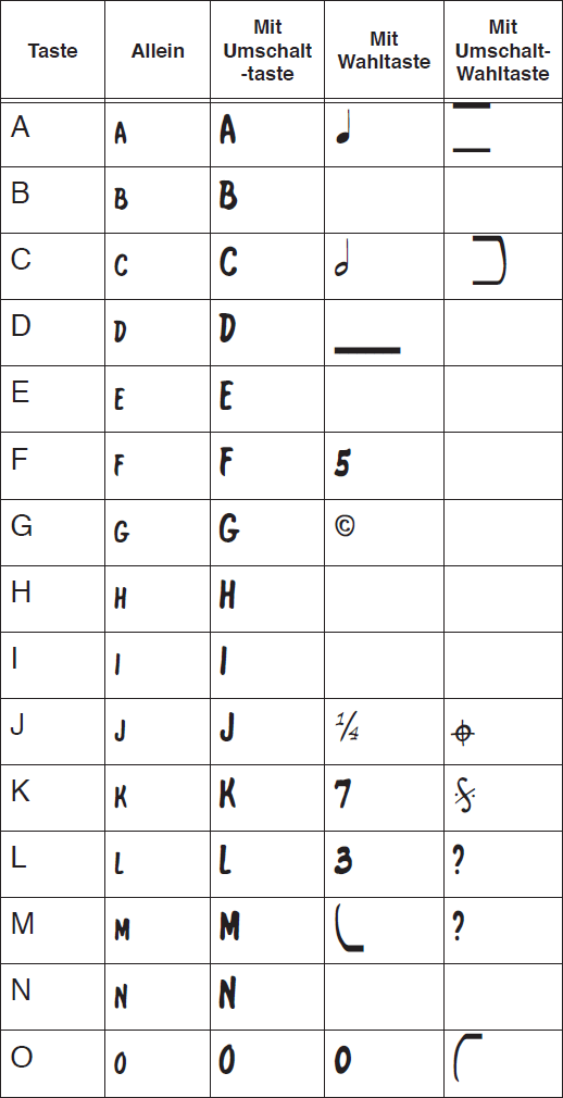 Sie befinden sich hier: Referenz > Zeichentabellen > Zeichentabelle Broadway Copyist