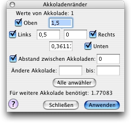 Verwenden Sie diese Dialogbox, um die Ränder von Akkoladen numerisch anzugeben.