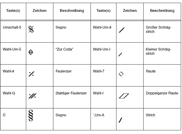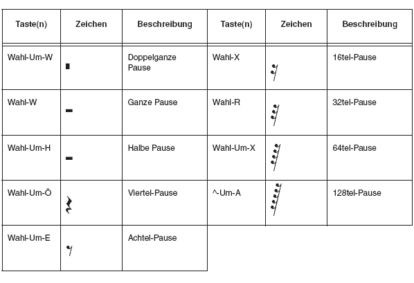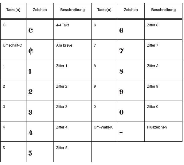 Taktartangaben und Blockpausenziffern