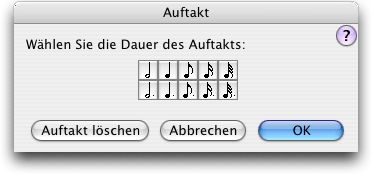 - Auftakt löschen. Klicken SIe diesen Knopf, um den Auftakt zu löschen und den Takt wieder in einen normalen Takt zu ändern.