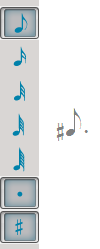 - Klicken Sie eine Note mit einem rhythmischen Wert Ihrer Wahl an, dann klicken Sie ein Vorzeichen, einen Punkt oder einen Bogen, um die Note zu verändern.
