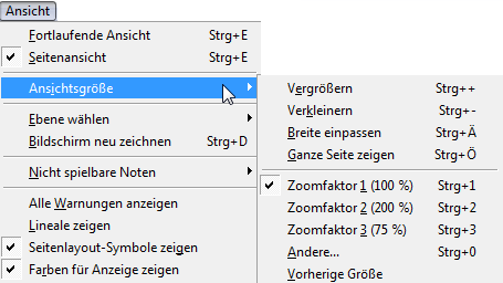 Sie haben damit nicht die Größe der später gedruckten Musik verändert, sondern Sie ändern nur die Art der Bildschirmanzeige. Die Musik selber wird weiterhin in normaler Größe gedruckt werden.