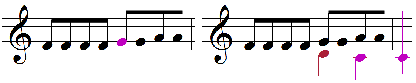 Es kommt manchmal vor, dass eine zweite Stimme erst in der Mitte des Taktes