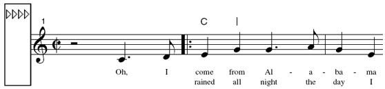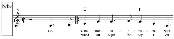Oh, I come from Al-a-ba-ma with a ban-jo