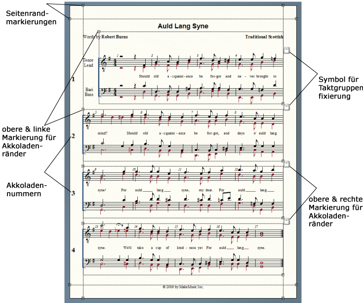 Taktgruppe – PrintMusics System zur Fixierung von Takten in einer Akkolade – (dargestellt