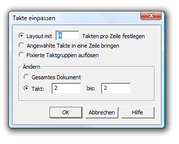 - Wählen Sie Extras > Takte einpassen. Es erscheint die Dialogbox
