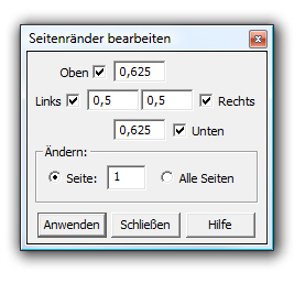 Verwenden Sie diese Dialogbox, um die Ränder von Seiten numerisch anzugeben.