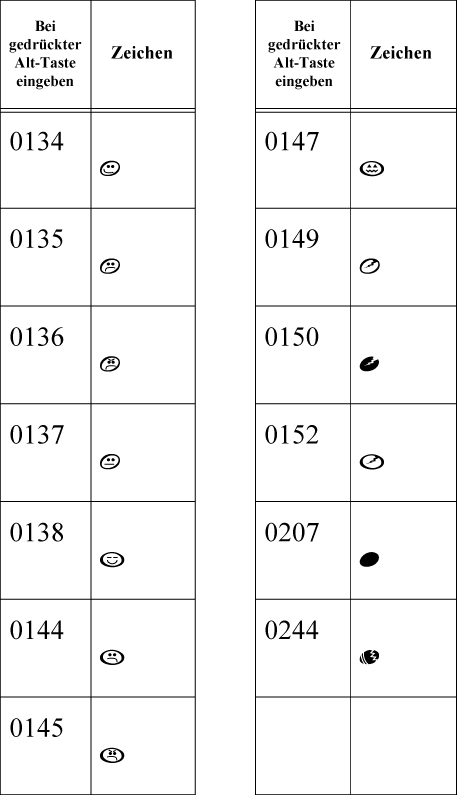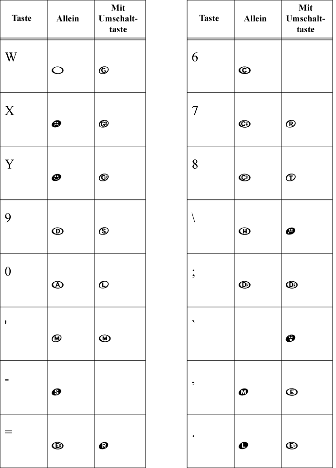 Finale AlphaNotes Zeichentabelle