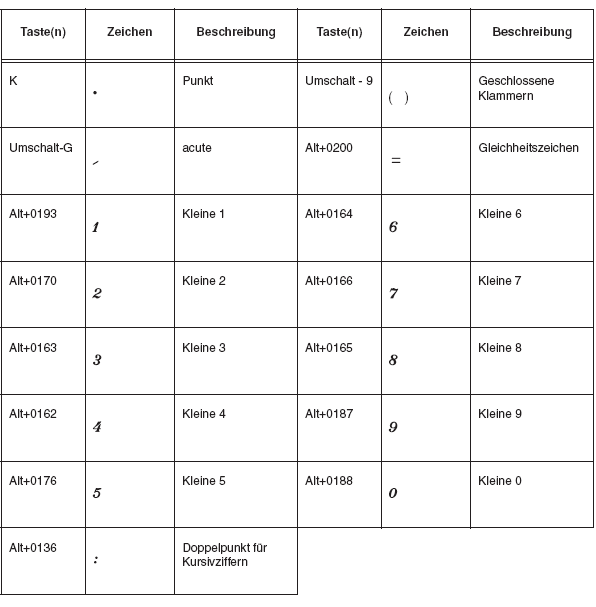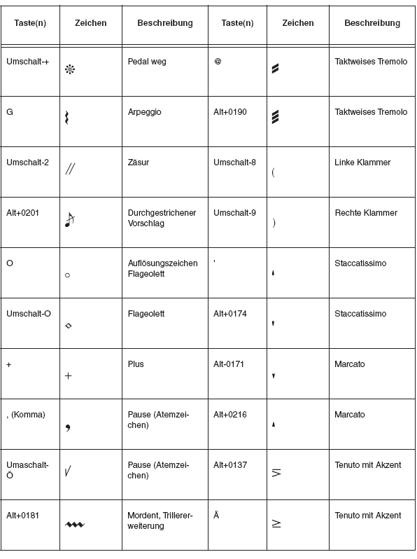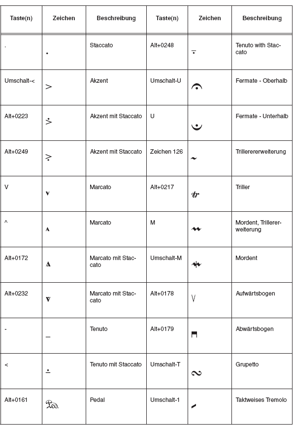 Sie befinden sich hier: Referenz > Zeichentabellen > Zeichentabelle Maestro