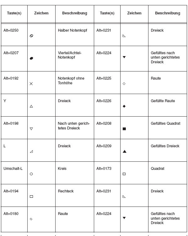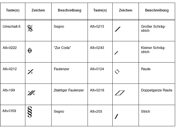 Andere Notationssymbole