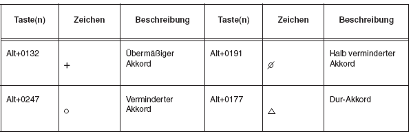 Akkordsymbole und Harmonien