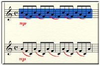 In PrintMusic gibt es zwei unterschiedliche Arten der Anwahl von Musikbereichen: