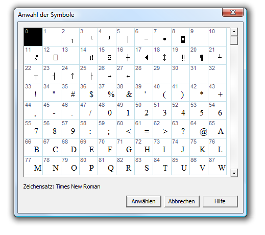 Anwahl der Symbole