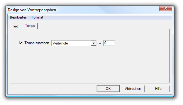 In dieser Dialogbox weisen Sie der Vortragsbezeichnung, die Sie gerade erzeugen oder bearbeiten ein Wiedergabetempo zu.