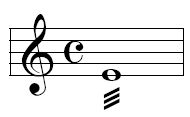 Sie können eines von diesen Zeichen auf einem Notenhals platzieren (z. B. für ein Streichertremolo) oder über oder unter einer Note. Sie können auch eines zwischen zwei Notenhälsen platzieren, um einen schnellen Wechsel zwischen den beiden Tonhöhen anzuzeigen.
